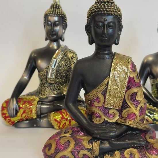 3 Budas meditando son un recordatorio de mantener una actitud consciente y reflexiva ante la vida, evitando las negatividades para lograr un crecimiento personal y una mayor armonía