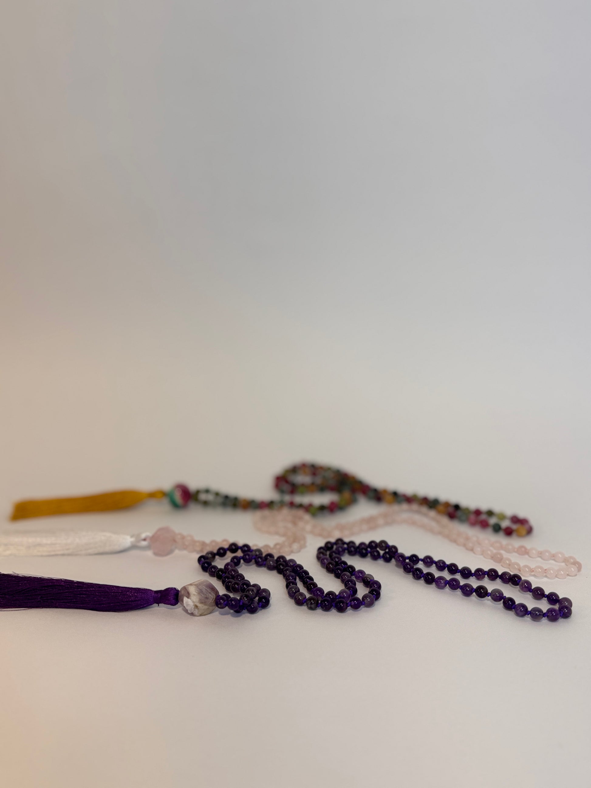 Japamalas Collares de meditación con cuentas sagradas, usados para orar, repetir mantras y conectar con la calma interior