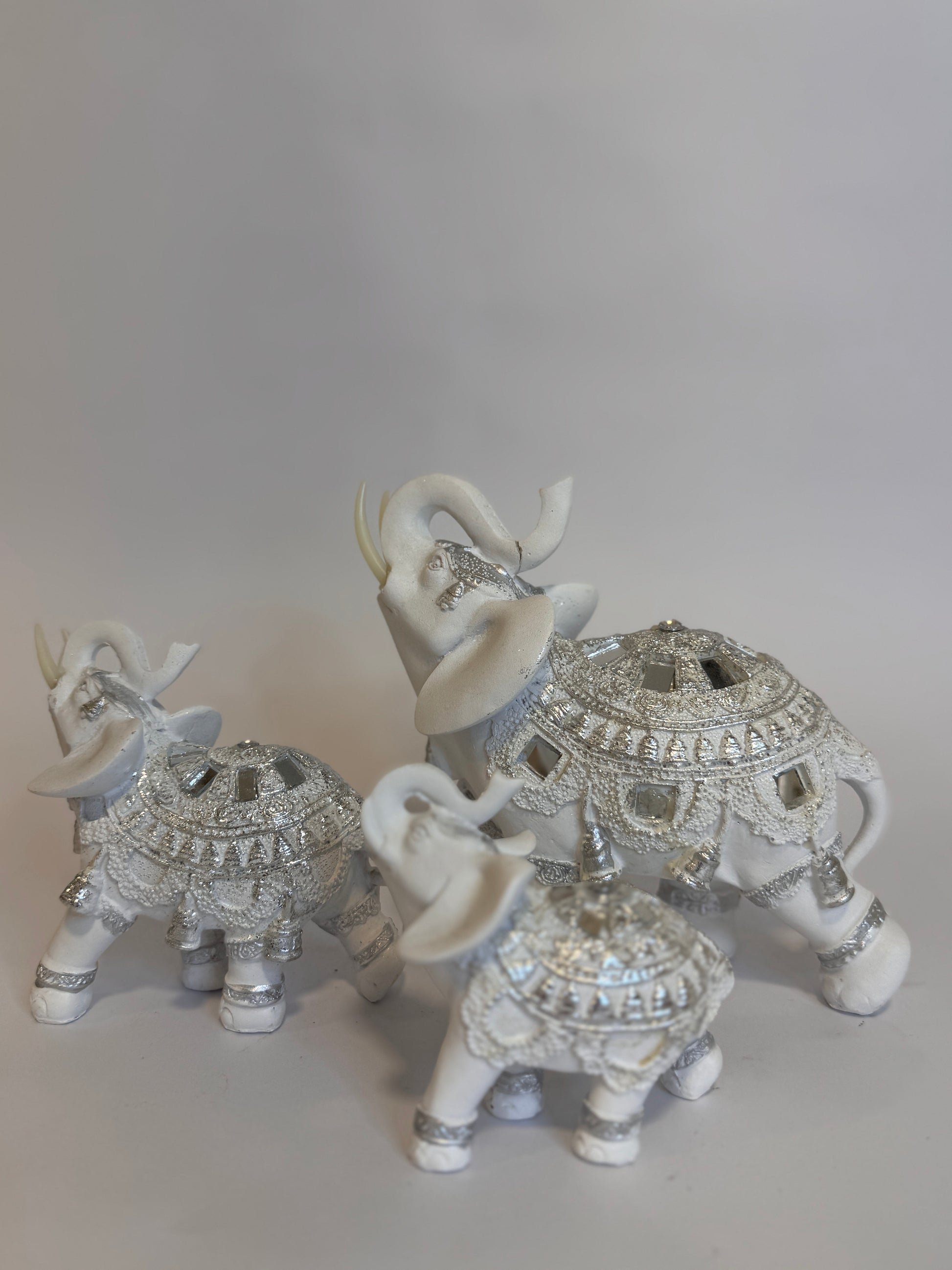 Kit de Elefantes Blancos Símbolos de pureza, sabiduría y buena fortuna. Este kit atrae prosperidad, protección y energía positiva al hogar o negocio